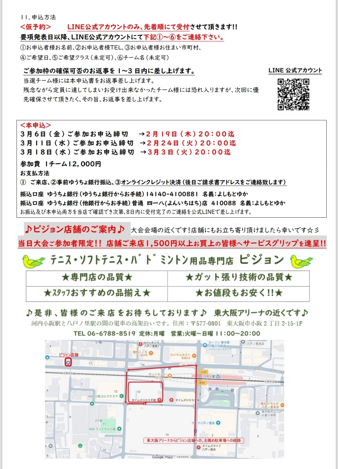 テニスショップピジョン ソフトテニスショップピジョン バドミントンショップピジョン 大阪府東大阪市