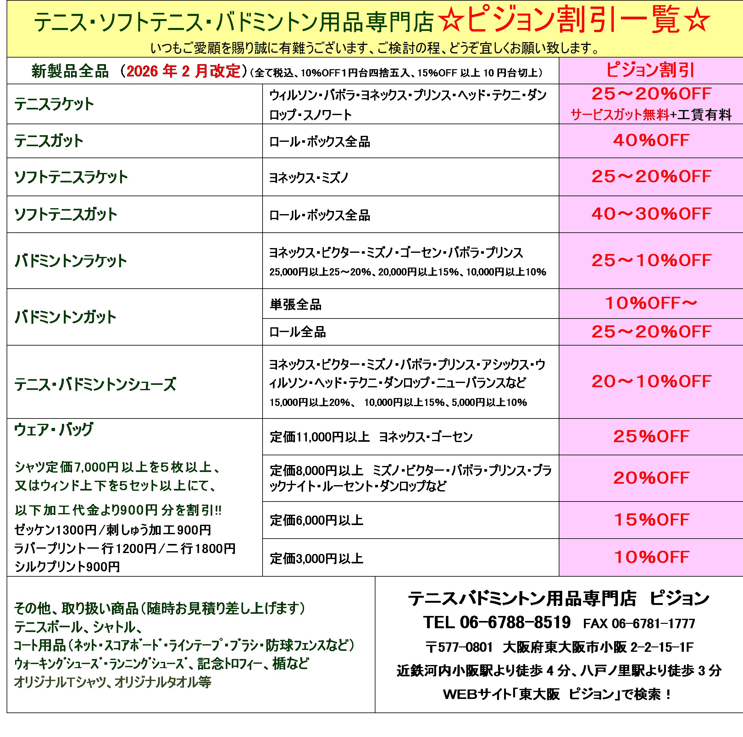 テニスショップピジョン ソフトテニスショップピジョン バドミントンショップピジョン 大阪府東大阪市
