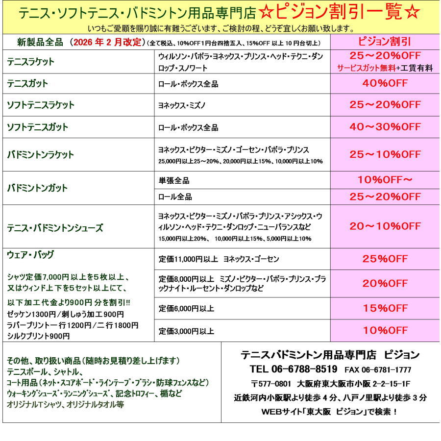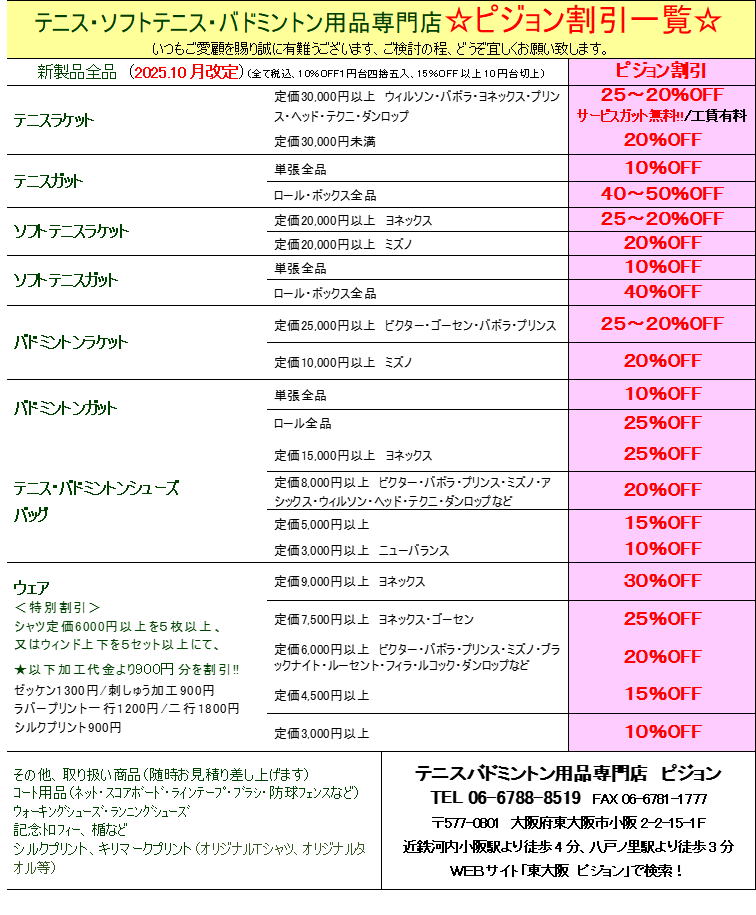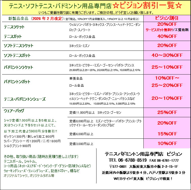 テニスショップピジョン ソフトテニスショップピジョン バドミントンショップピジョン 大阪府東大阪市
